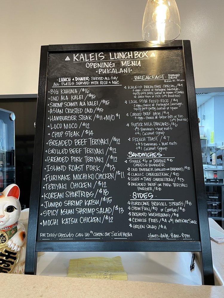 Welcome to Kaleiʻs Lunchbox - Pukalani, a local gem nestled in the heart of Makawao, where breakfast and brunch come alive with delectable flavors. Here, you'll find a menu that tantalizes the taste buds and warms the soul. Signature dishes like Mahi Ala Kalei, Furikake Mochiko Chicken, and Prime Rib Cutlet shine bright, each crafted with care and dedication.